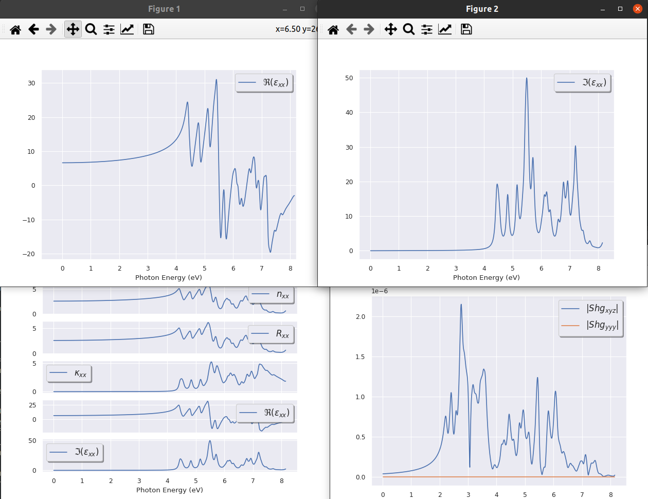 Concerning the non-linear optics, the graphs for the xyz components are also quite bad, with many isolated (but broadened) peaks. However, the yyy ones are perfect. Indeed, they vanish due to symmetry reasons! Visualize the imaginary part with:
