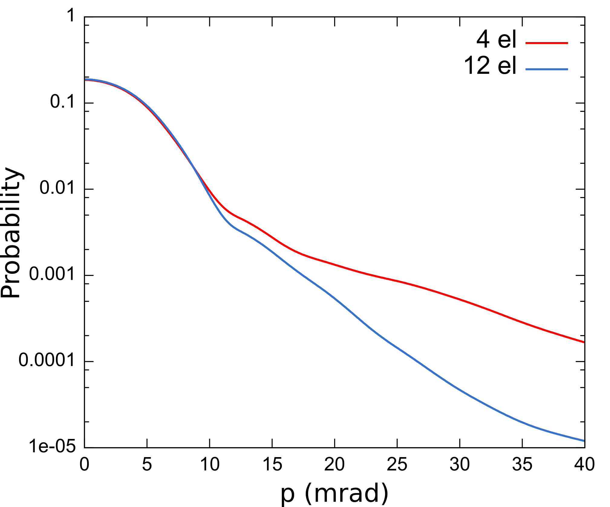 The dataset with 4 valence electrons is not complete enough to describe the positron wavefunction around the nucleus. This is reflected in the unphysically high probability at high momenta in the spectrum.